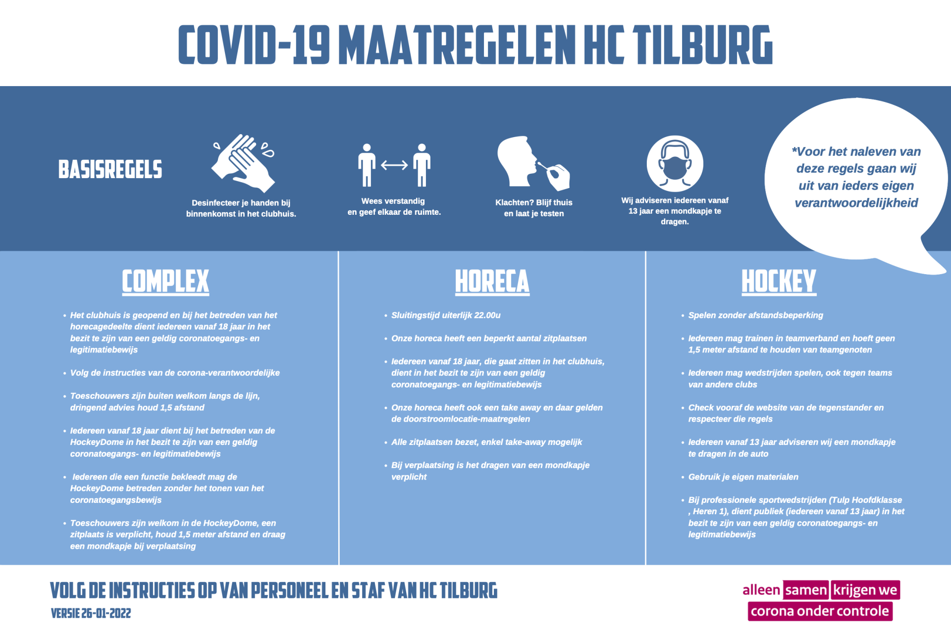 Voor het bezoek aan HC Tilburg zijn i.v.m. Corona de volgende maatregelen vastgesteld.